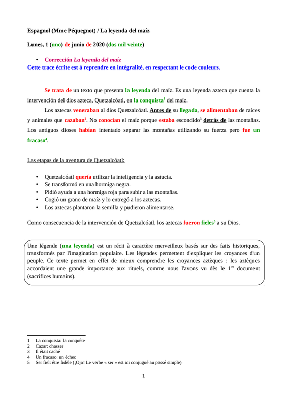 - Penser à bien respecter le code couleurs et à indiquer la date du jour