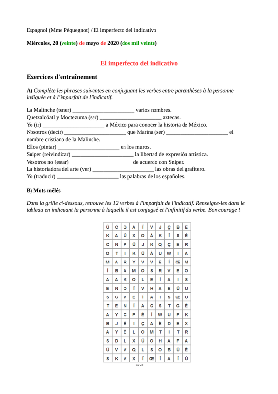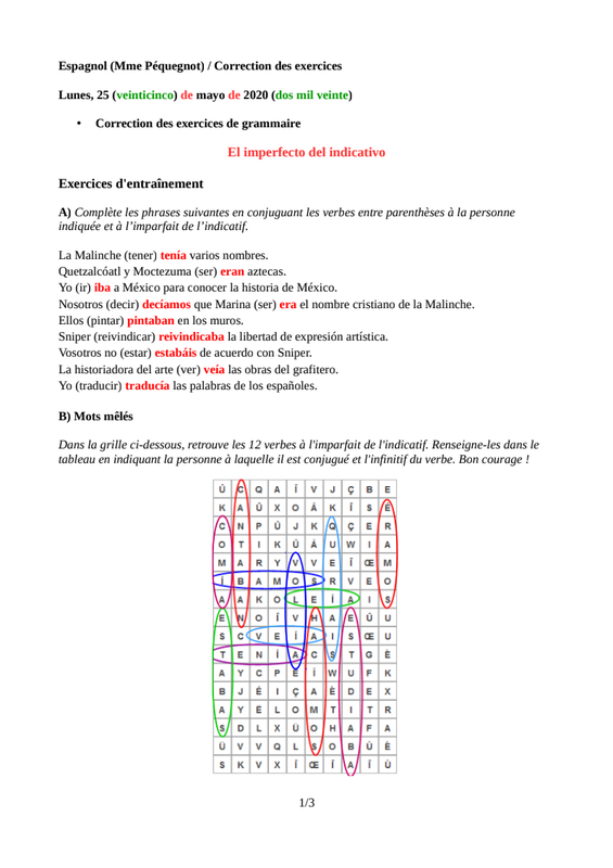 - conjuguez les verbes, à l'écrit, sans regarder le cahier, puis vérifiez